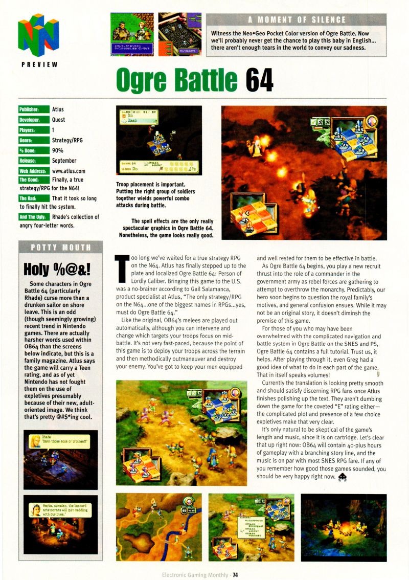 reviews of the game Ogre Battle 64: Person of Lordly Caliber on Nintendo 64