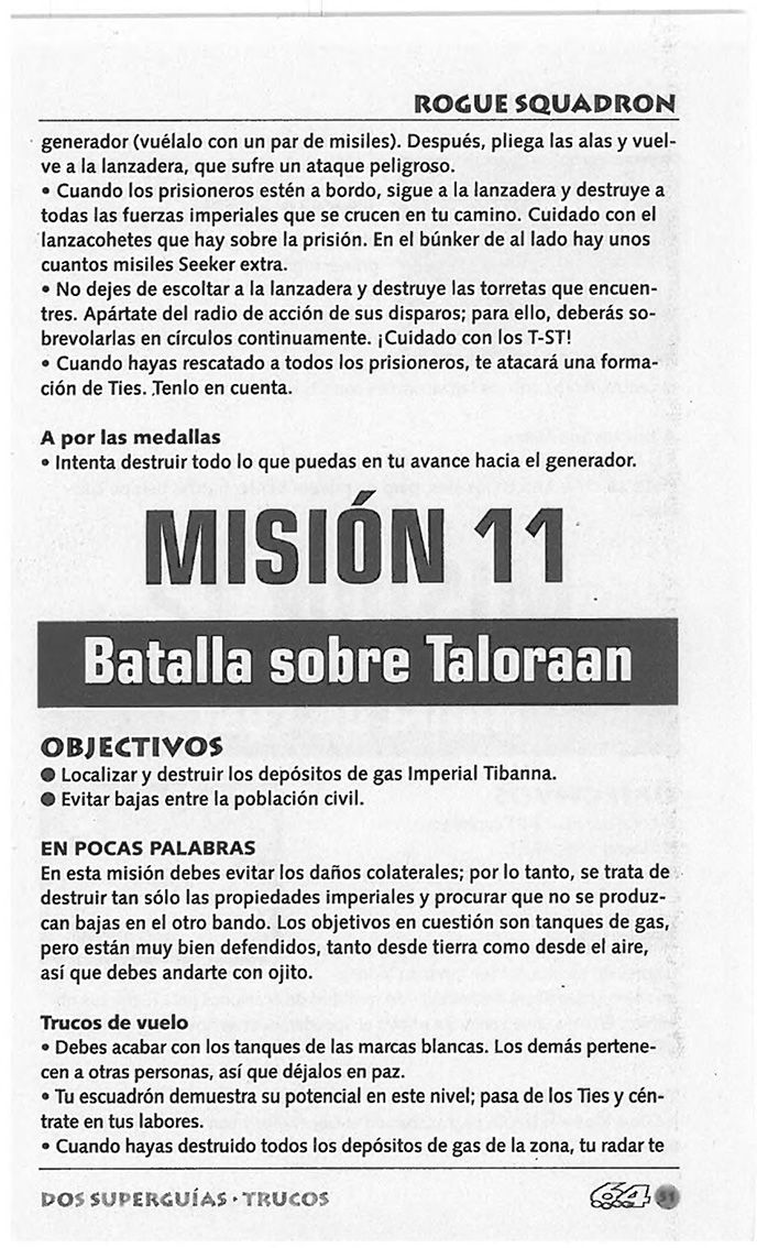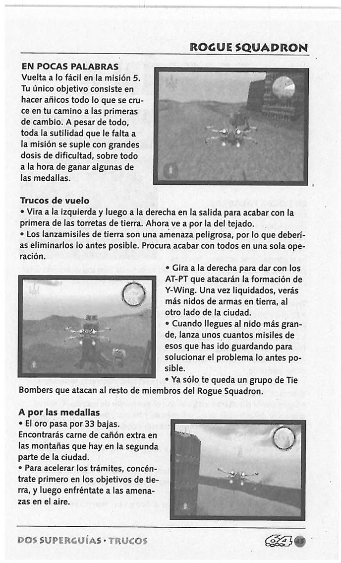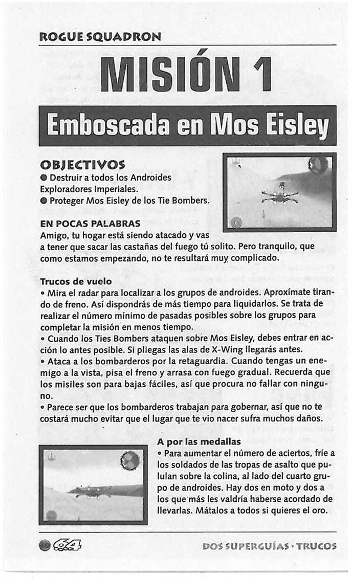 The walkthroughs for the game Star Wars: Rogue Squadron on Nintendo 64