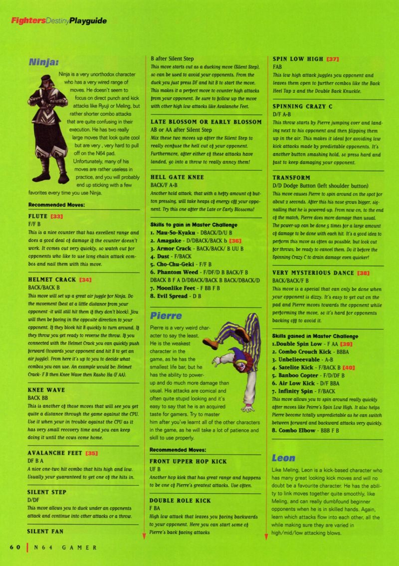 es solutions du jeu Fighters Destiny sur Nintendo 64