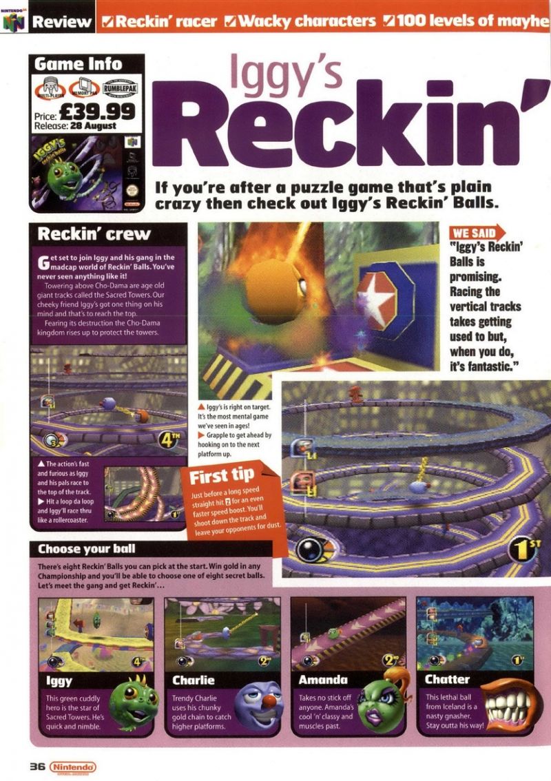 Les tests du jeu Iggy's Reckin' Balls scannés dans des magazines