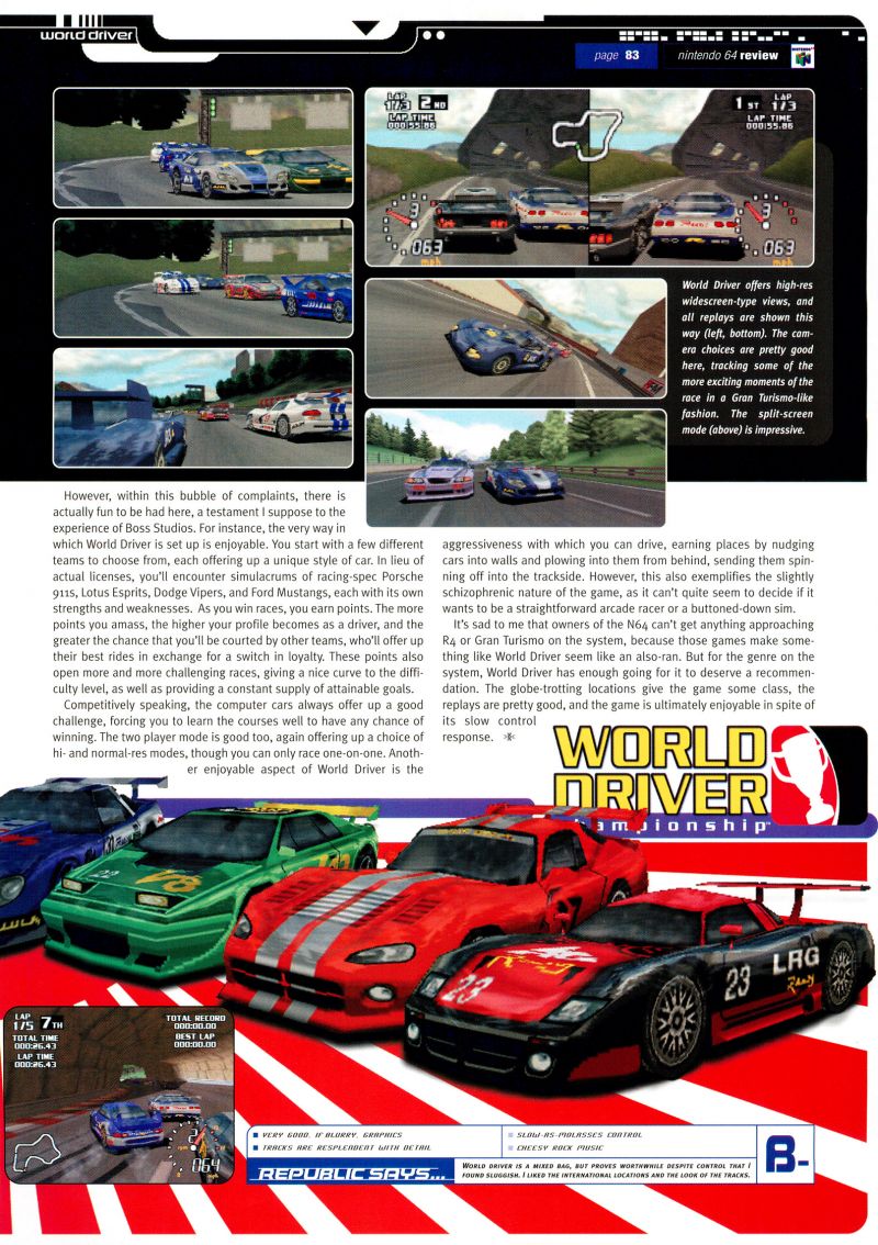 World Driver Championship devait s'imposer comme LE jeu de course sur Nintendo 64. Y est-il parvenu?