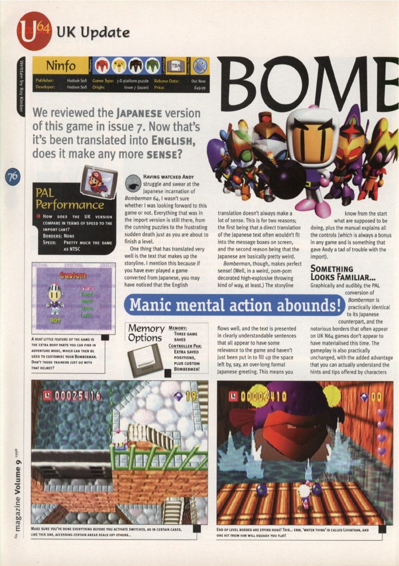 es tests du jeu Bomberman 64 scannés dans des magazines