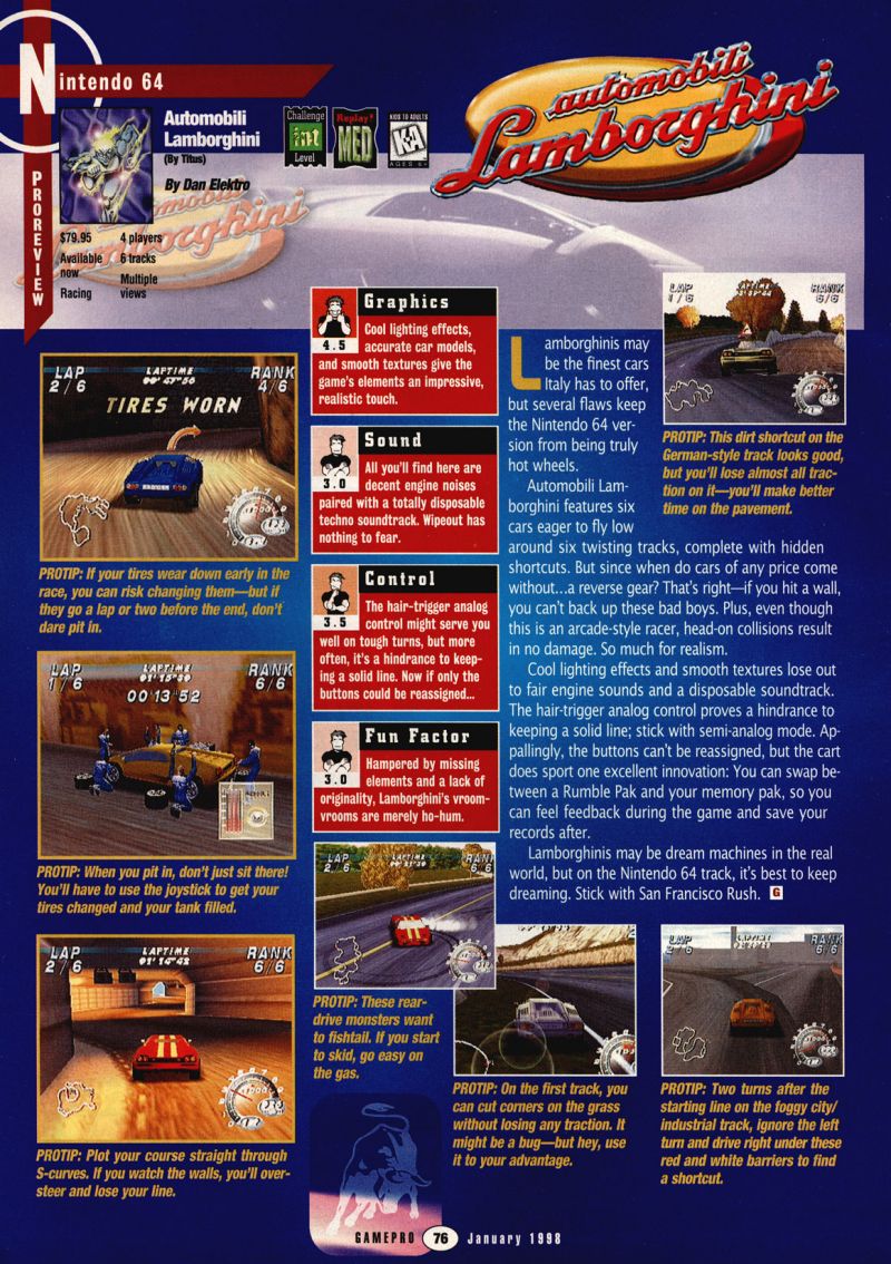 he reviews of the game Automobili Lamborghini scanned in magazines