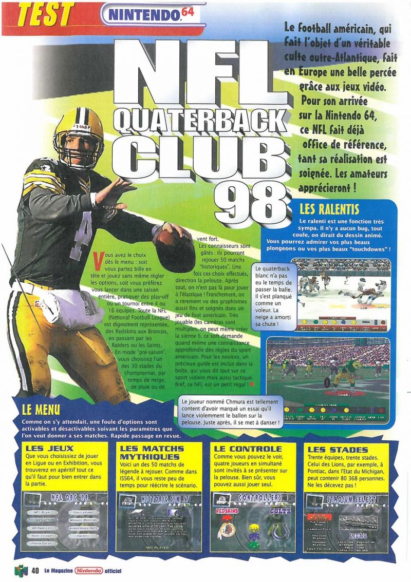 The reviews of the game NFL Quarterback Club '98 scanned in magazines